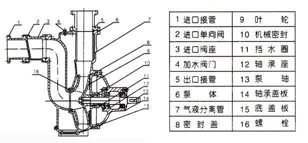 七、ZW型自吸式无堵塞排污泵结构图: